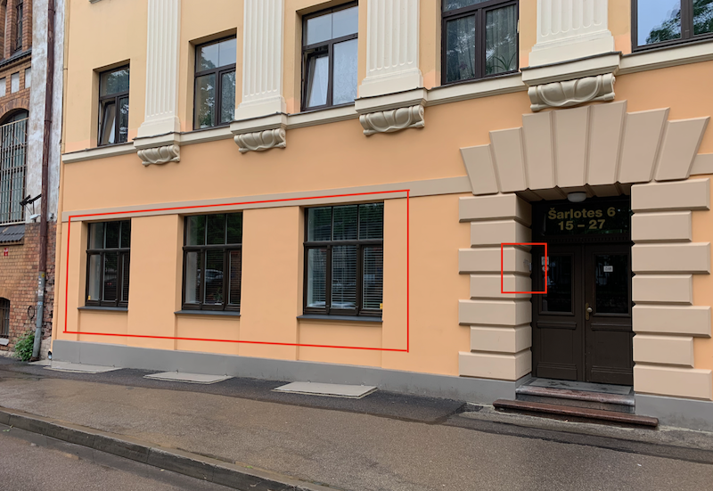 Hinweis: Die Hausnummer 6 in der Šarlotes iela hat zwei Eingänge. Bitte wählen Sie den mit unserem Firmenschild. Der Türcode ist 3344#. Die Kanzlei befindet sich im Erdgeschoss.
